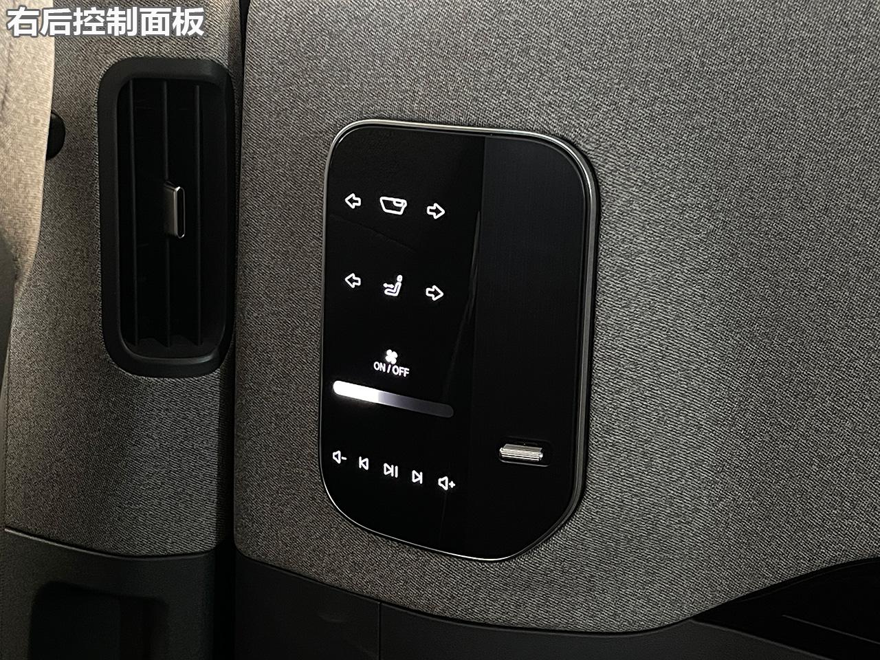 右后车门处的控制面板包含了智能茶几、副驾座椅、空调和多媒体控制功能,在宝宝熟睡或驾驶员无暇操作中控屏时,乘客可通过该面板直接操作相关功能,提升操作效率的同时,也不会打扰驾驶员或正在休息的宝宝。