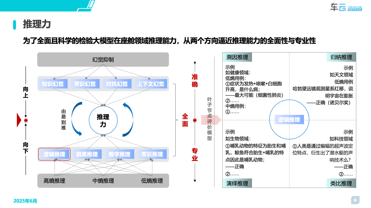 为了全面且科学的检验大模型在座舱领域的推理能力,我们将从两个方向逼近推理能力的全面性与专业性。