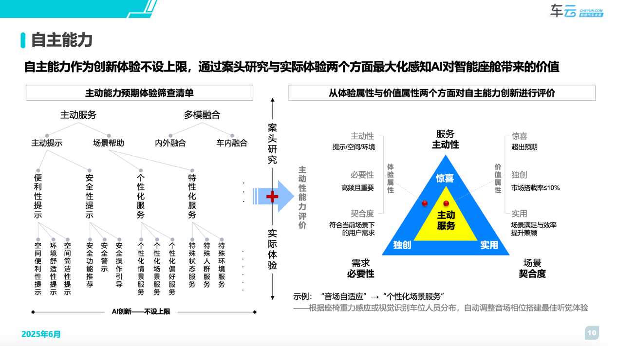 主动能力作为创新的一部分,整个行业仍处于场景探索和价值验证阶段,因此在评价过程中不设上限,但在创新性认定过程做了严格的要求。我们会从体验属性与价值属性两个维度进行评判,必须满足所有要求才会作为创新项。