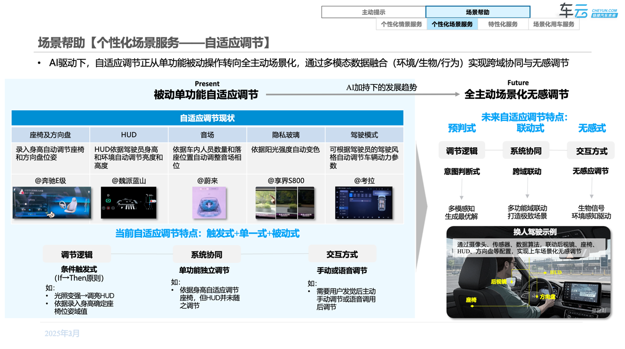 基于多模态感知能力与AI大模型的分析决策能力,智能座舱从被动变得越来越主动,其特点为从传统基于规则的主动向基于模型的主动演化。