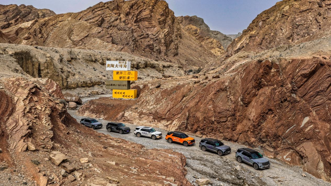 面对如此恶劣的环境,福特探险者展现出“可上昆仑”的全场景穿越实力:纯机械结构的托森B型限滑后差速器实时调整左右轮动力分配,让车辆在陡峭沟壑依然保持精准循迹,犹如行走在刀锋上的平衡大师;TMS地形管理+四驱系统毫秒级响应,智能调节扭矩输出,在页岩与砂岩交替的复杂路况如履平地;金属底盘装甲+全地形轮胎组成“防护铠甲”,在尖锐碎石路况下实现零爆胎的完美战绩……每一处岩壁的刮擦,都是硬核实力的勋章;每一条沟壑的跨越,都在重新定义户外越野的边界。