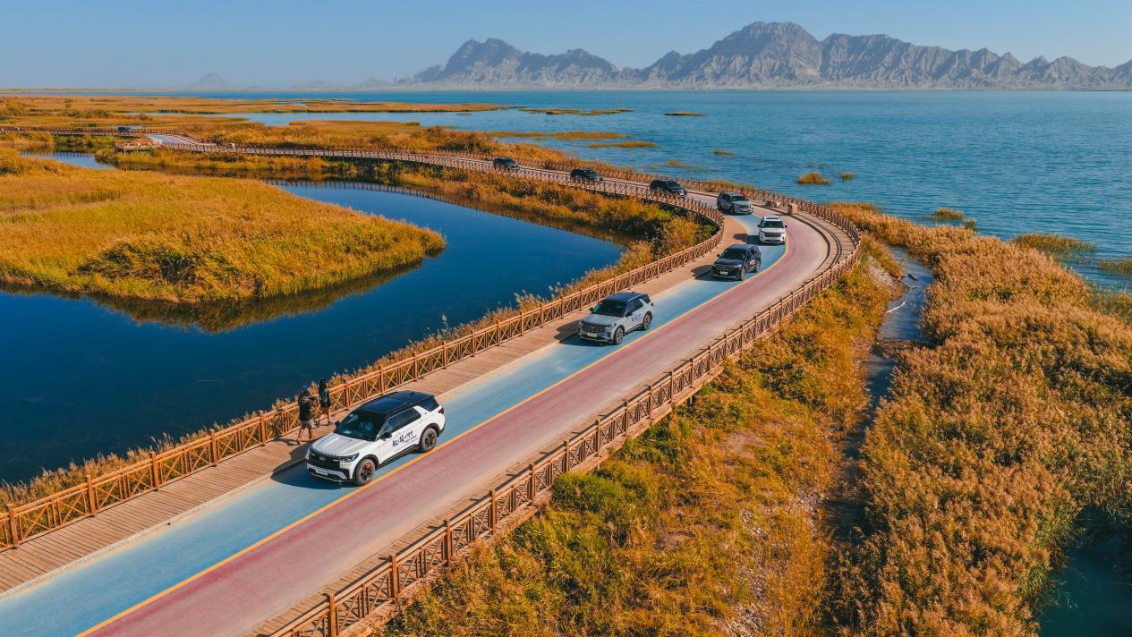 在塔克拉玛干沙漠的边际线上,永安湖如同一颗璀璨的绿宝石,诉说着人类与自然抗争的壮丽史诗。三代治沙人用半个世纪的坚守,将流动沙丘化作万顷碧波,创造出“半沙半湖”的世间奇观。这幅大自然的双面画卷,恰似福特探险者“硬核豪华”的一车双面。