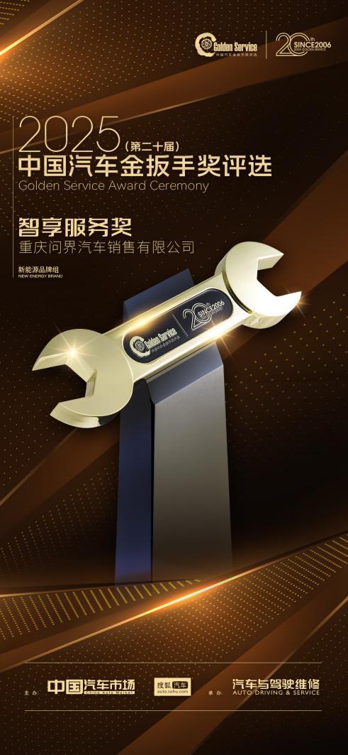 近日,由《中国汽车市场》杂志社与搜狐汽车联合主办的2025(第二十届)中国汽车金扳手奖评选结果正式公布。在本次评选中,问界汽车凭借前瞻性的“智享服务体系”与不断沉淀的用户服务实践,荣获新能源品牌组“智享服务奖”,其服务能力与用户认可度得到专业机构与市场的双重认可。此外,问界全国12家用户中心荣获“金扳手奖百强质选店”称号,有多位主播荣获“十大主播”奖项,展现了其服务生态的全面实力。